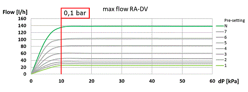 - Der notwendige Differenzdruck am Ventil darf nicht kleiner als 10 KPa betragen.