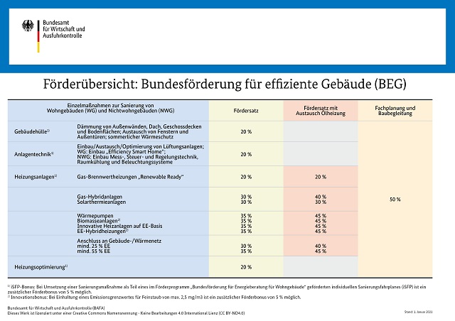 Ab 1.1.2021 tritt die neue BEG - Einzelmaßnahmen in Kraft! Weitere Informationen von der BAFA gibt es hier - Seite in Überarbeitung!