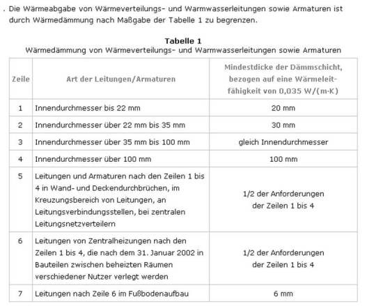 Um die Wärmeverluste der Rohrleitungen von der Wärmeerzeugung (z.B. Heizkessel) zur Wärmeübergabe (z.B. Heizkörper) so gering wie möglich zu halten, ist es wichtig, die Rohrleitungen fachgerecht zu isolieren. Dies gilt insgesondere für unbeheizte Bereiche. Um eine unkontrollierte Wärmeübergabe (speziell bei 1-Rohranlagen) zu vermeiden, sollten gerade in Wohngebäuden mit guter Wärmedämmung auch die Rohrleitungen in beheizten Räumen gut isoliert sein.