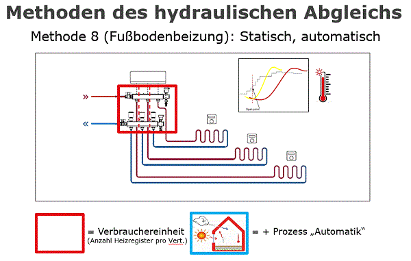Methode 6: Statischer, automatischer hydraulischer Abgleich mit einer Fußbodenheizung